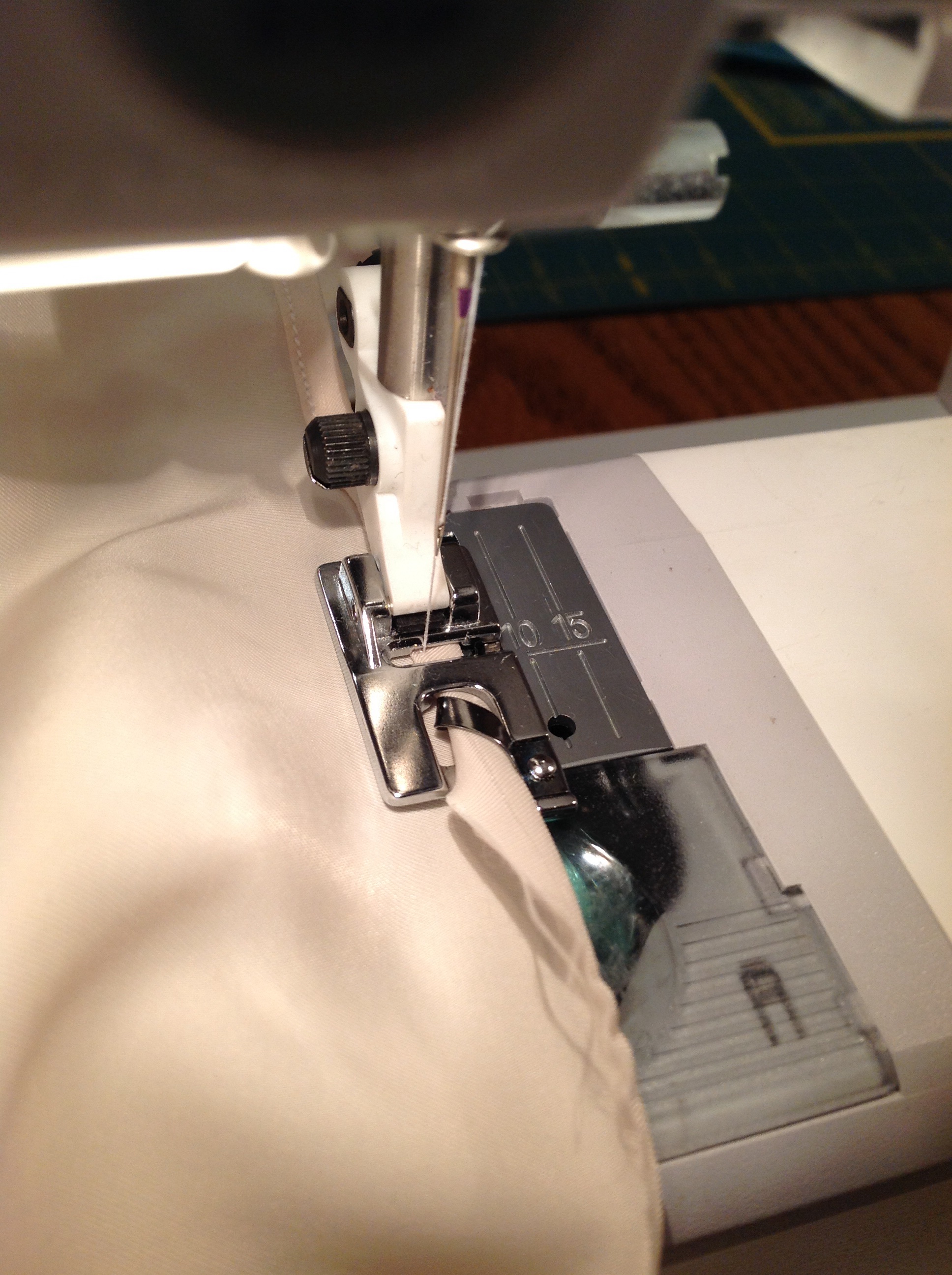 All that was left was the hem! Both the print and lining were a slippery polyester, but I decided to give the narrow hem foot a try, rather than press up anything bulkier. To my relief, it performed beautifully.